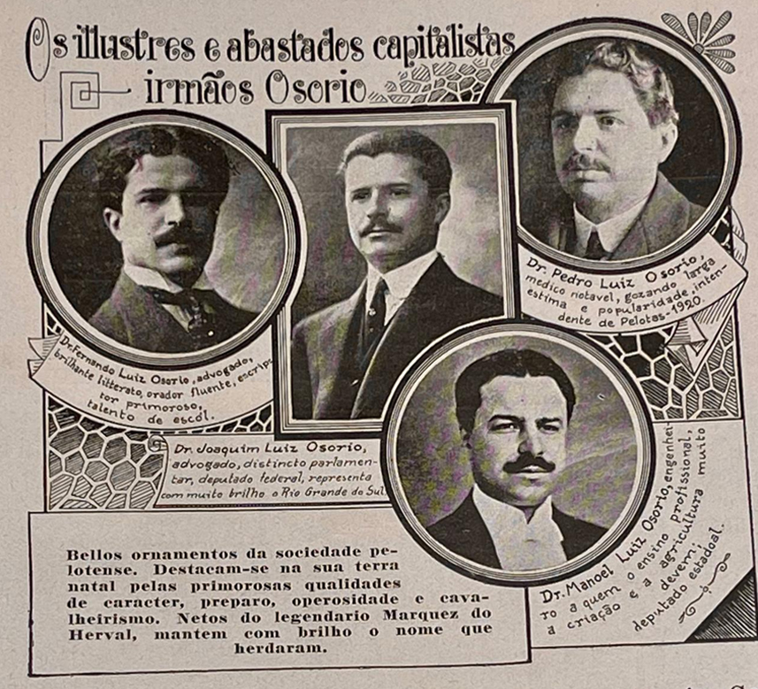 Manoel Luís Osorio e Leonídia Maciel Moreira (foto) se casaram em Paris, em 27 de outubro de 1904. Eles eram primos (em 4º e 5º grau misto). Leonídia Maciel Moreira nasceu em Pelotas, em 12 de janeiro de 1881, era neta paterna do Barão de Butuí (1806 – 1876). Pelo lado materno, era neta do Tenente Coronel Eliseu Antunes Maciel (1810 – 1911) e filha da poeta e musicista Flora Mercedes (1851 – 1881). Era uma moça de educação refinada – tocava piano, escrevia poesia, gostava de cantar e pintar. Conta-se que foi amor à primeira vista.